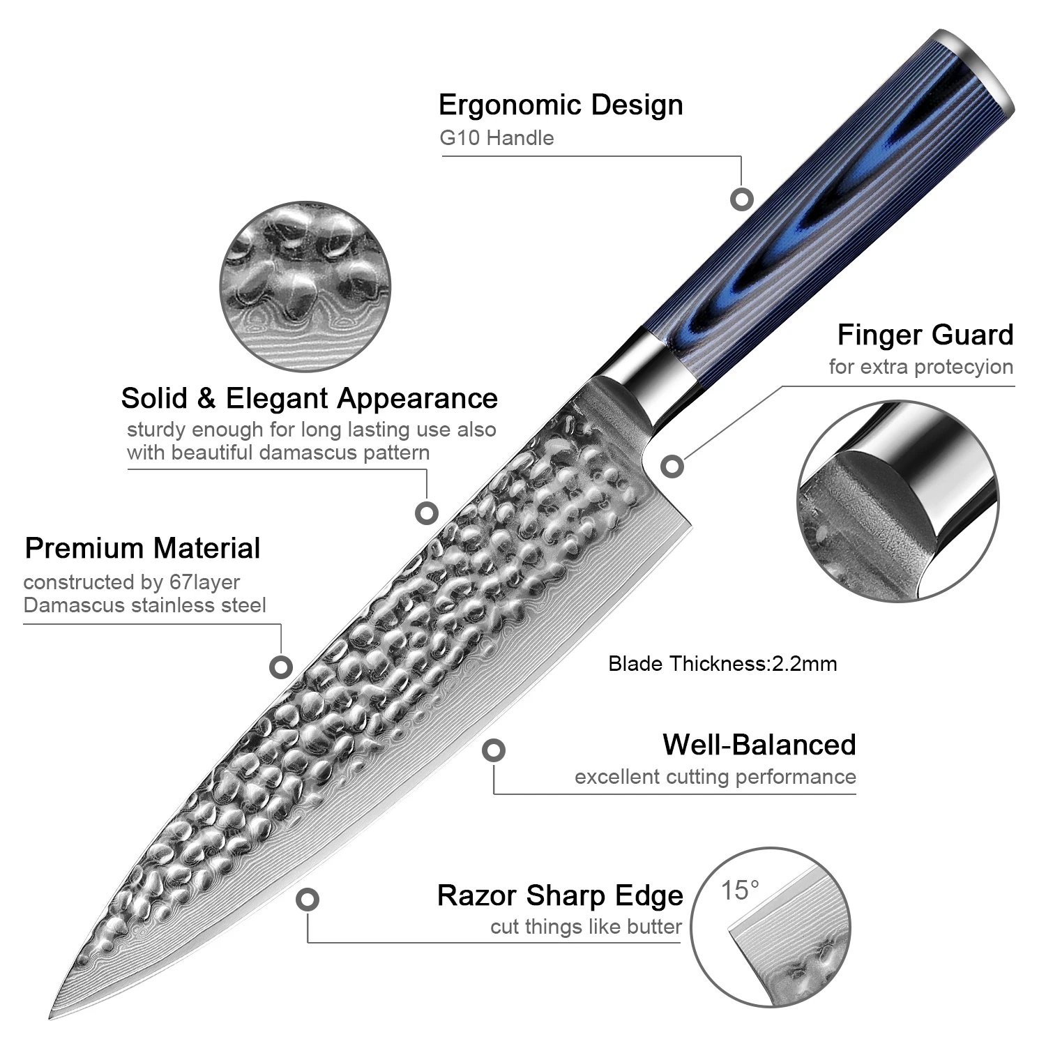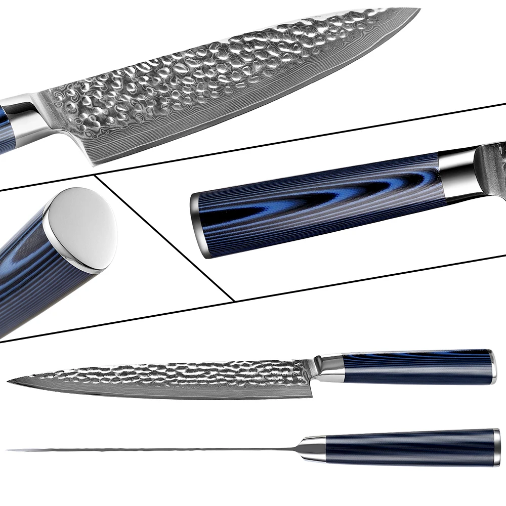 【Super Sharp Edge】--67-layer Japanese Damascus super steel with a finely polished surface. Corrosion resistant and tough. The curved edges are sharp, more durable and sharper. It can be stabilized at 60 ± 2 HRC, with vacuum heat treatment hardness and long-lasting clarity.